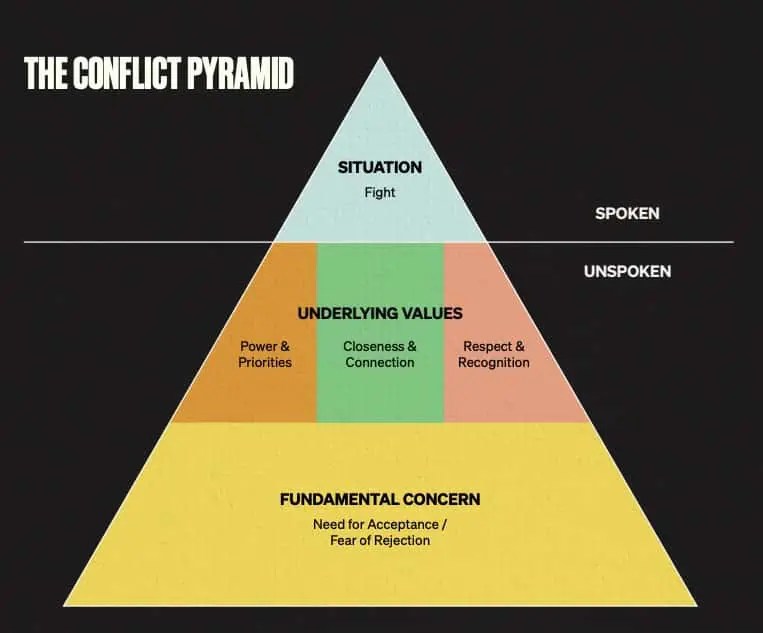If you’re a co-founder too, you might find Ester Perel’s ‘erotic intelligence’ framework quite helpful—in every conflict, she said, there are three main ‘unspoken needs’ that, when unmet, may lead to divorces—or co-founder separation for that matter: (1) power/priorities (whether they have a sense of control and autonomy), (2) closeness/connection (sense of care between the two of you), and (3) respect/recognition (noticing and appreciating their contribution).